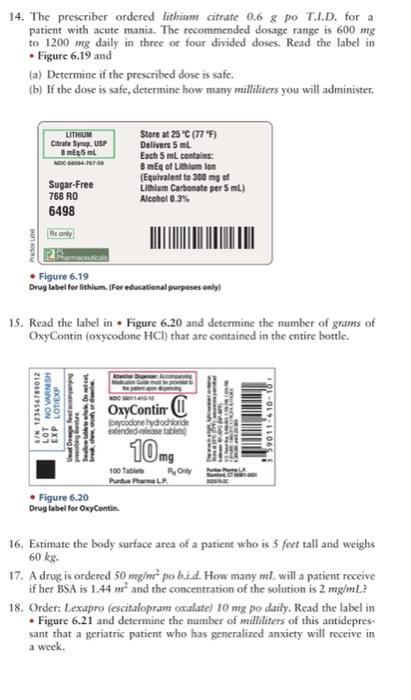 Solved 14 The Prescriber Ordered Lithium Citrate 0 6 Po Chegg Com